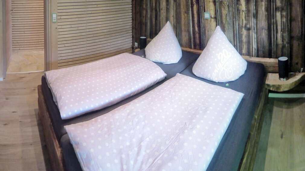 - Betten aus historischen Balken mit ergonomischen, natürlichen Schlafsystemen