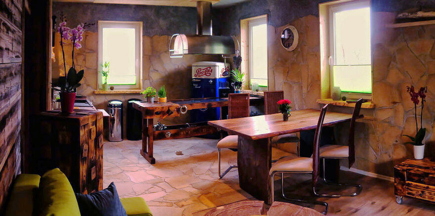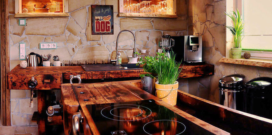 - Voll ausgestattete BIO-Küche mit Kaffeevollautomat, Kühlschrank mit Frostfach und Spülmaschine